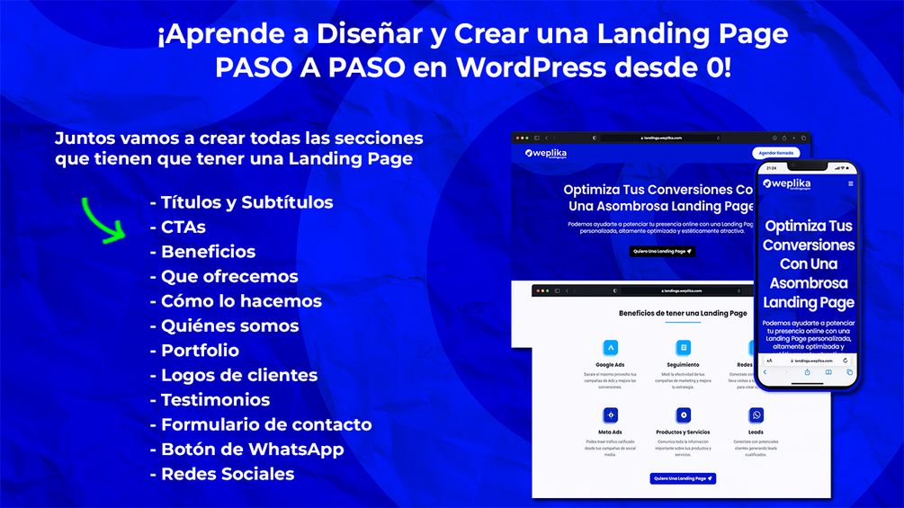 En este curso vas a aprender PASO A PASO como diseñar y crear una landing page en WordPress desde cero utilizando plugins y un theme gratuitos.